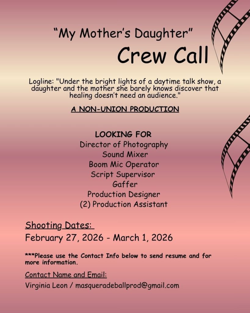 Please send your resume and portfolio/IMDb link to masqueradeballprod@gmail.com.